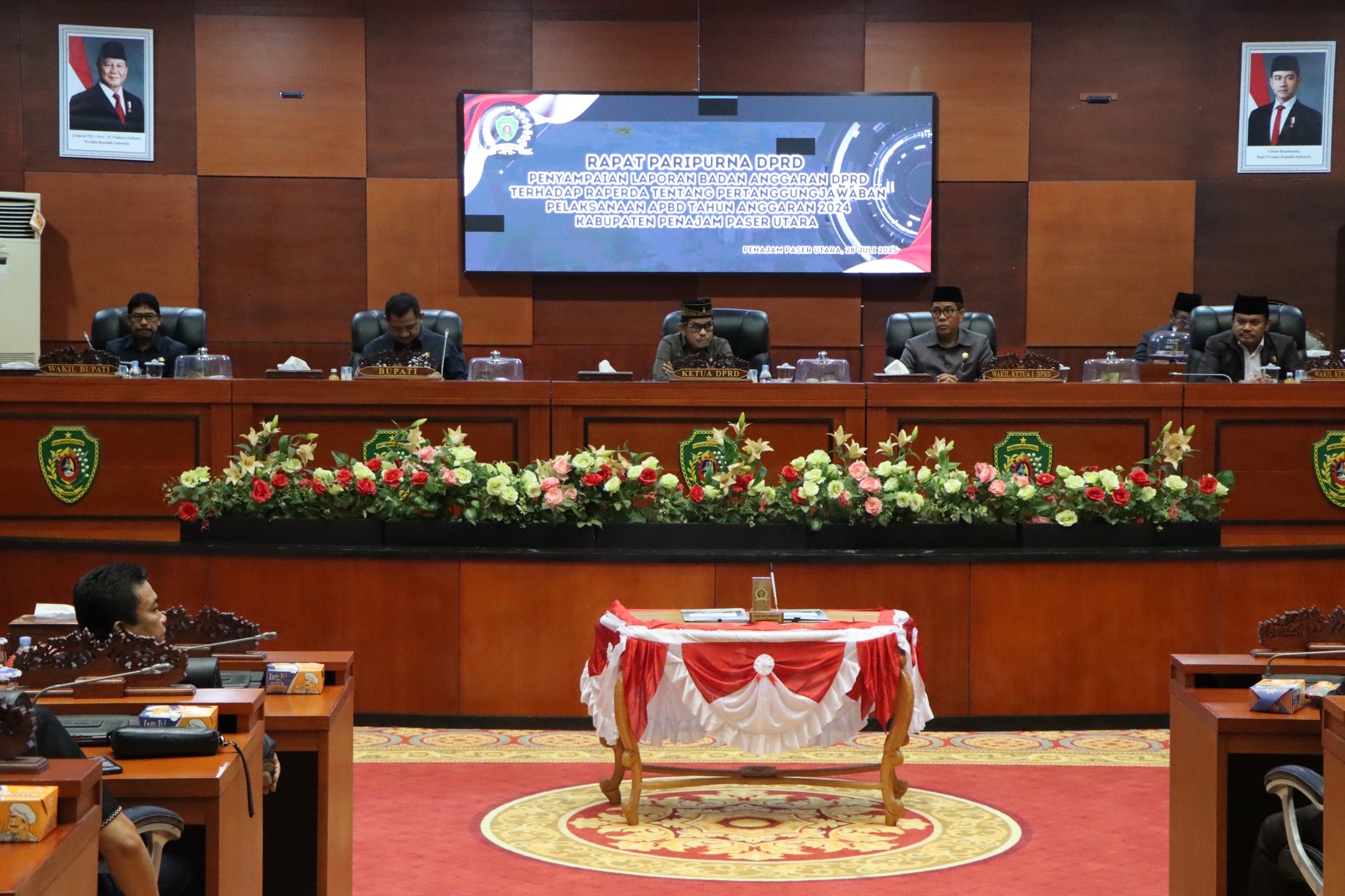Penajam — Dewan Perwakilan Rakyat Daerah (DPRD) Kabupaten Penajam Paser Utara (PPU) menggelar Rapat Paripurna dengan agenda Penyampaian Laporan Badan Anggaran terhadap Rancangan Peraturan Daerah (Raperda) tentang Pertanggungjawaban Pelaksanaan Anggaran Pendapatan dan Belanja Daerah (APBD) Tahun Anggaran 2024, Senin (28/7/2025), di Gedung Paripurna DPRD PPU.