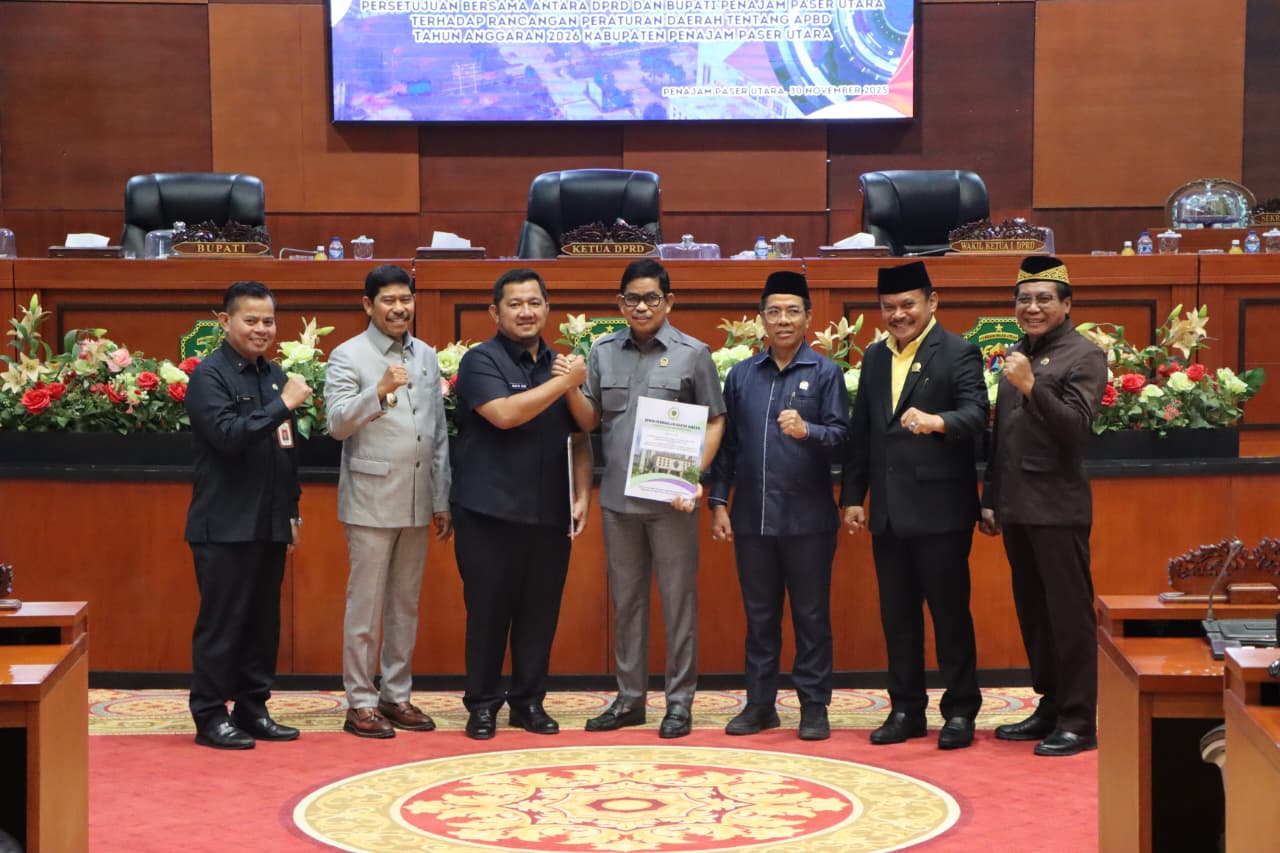 Penajam – Bupati Penajam Paser Utara (PPU) dan Dewan Perwakilan Rakyat Daerah (DPRD) PPU telah menyetujui Rancangan Peraturan Daerah (Raperda) tentang Anggaran Pendapatan dan Belanja Daerah (APBD) Tahun Anggaran 2026 Kabupaten PPU, Minggu (30/11/2025) di Gedung Paripurna DPRD PPU.