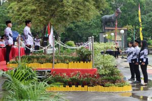 “Hujan masih rintik-rintik, tetapi semangat Bapak Ibu tidak luntur. Itulah guru hebat, guru dengan pengabdian yang luar biasa. Hari ini saya berdiri di depan Bapak Ibu, dan tanpa guru, saya tidak akan berada di sini,” ucapnya, disambut kehangatan para peserta upacara.